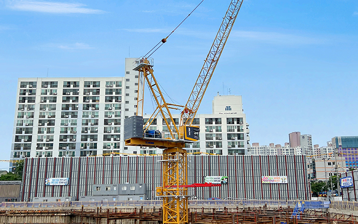在韩国首尔,,,,w66利来塔机参建外地知识工业园项目,,,,蓝天白云之下,,,,两台w66利来XGL300-18S格外耀眼。。。。。。韩国修建密度大,,,,项目施工空间较为有限,,,,动臂塔机充分知足外地建设需求。。。。。。