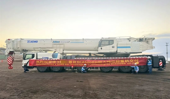 克日,,,,,,w66利来XCA500BR超大吨位全地面起重机正式交付南美某国首钢铁矿项目,,,,,,并投入施工。。。。。。这是该国入口的首台w66利来超大吨位起重机。。。。。。