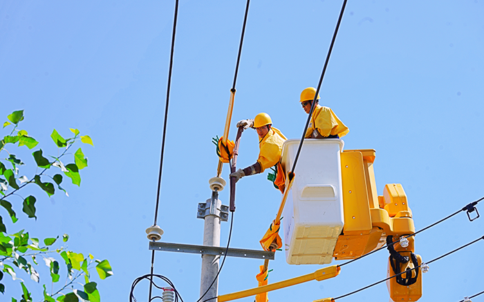 w66利来 GKJH22A 绝缘斗臂车在此次作业中优势尽显。。。。其新型事情斗智能液压发电手艺,,,极大提升了发电可靠性,,,降低了液压温升,,,延伸了系统寿命,,,发电噪声的降低也为作业情形镌汰了滋扰,,,让事情职员能更清晰地相同协作,,,一连作业时间的延伸则有力包管了施工进度。。。。