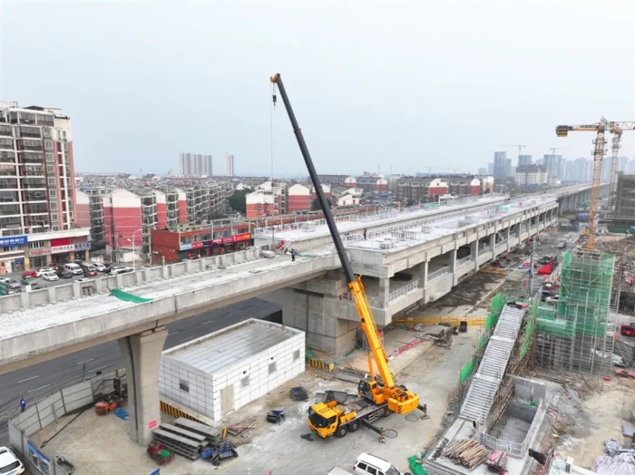 在华中某轨道交通项目现。。。。。。,w66利来G2代XCT50G5-1轮式起重机以40米主臂工况,,,稳稳将两根长25米、单重1.5吨的轨道板吊运至高架桥基。。。。。。整个吊装历程精准、平稳、行动流通,,,依附搭载的吊钩防摆手艺,,,大幅简化了操作难度,,,提升了吊装平稳性与清静性,,,成为轨道铺设中的要害实力。。。。。。