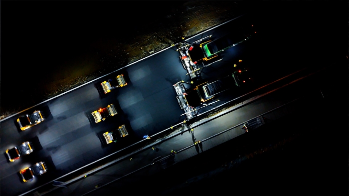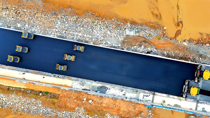 施工中,,,,,,w66利来依托多元感知手艺实现工况实时监测,,,,,,智能决议系统动态调配资源,,,,,,精准控制手艺包管摊铺压实毫米级精度。。。。。。无人驾驶摊压装备、智能压实,,,,,,协同作业,,,,,,24 小时一连施工无中止,,,,,,较古板模式效率提升25%,,,,,,能耗降低15%。。。。。。